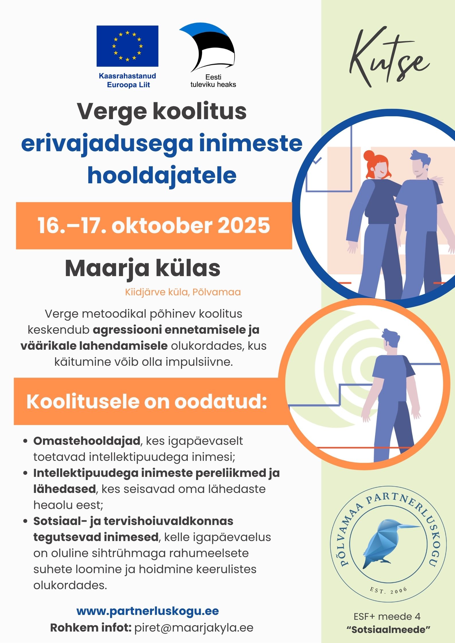 Verge metoodikal põhinev koolitus keskendub agressiooni ennetamisele ja väärikale lahendamisele olukordades, kus käitumine võib olla häiriv või impulsiivne – just nii nagu see sageli on intellektipuudega inimeste puhul. Koolitus annab osalejatele praktilised oskused, kuidas jääda rahulikuks ja toetavaks ka keerulistes olukordades ning kuidas pärast konflikti taastada usalduslik ja toimiv suhe.